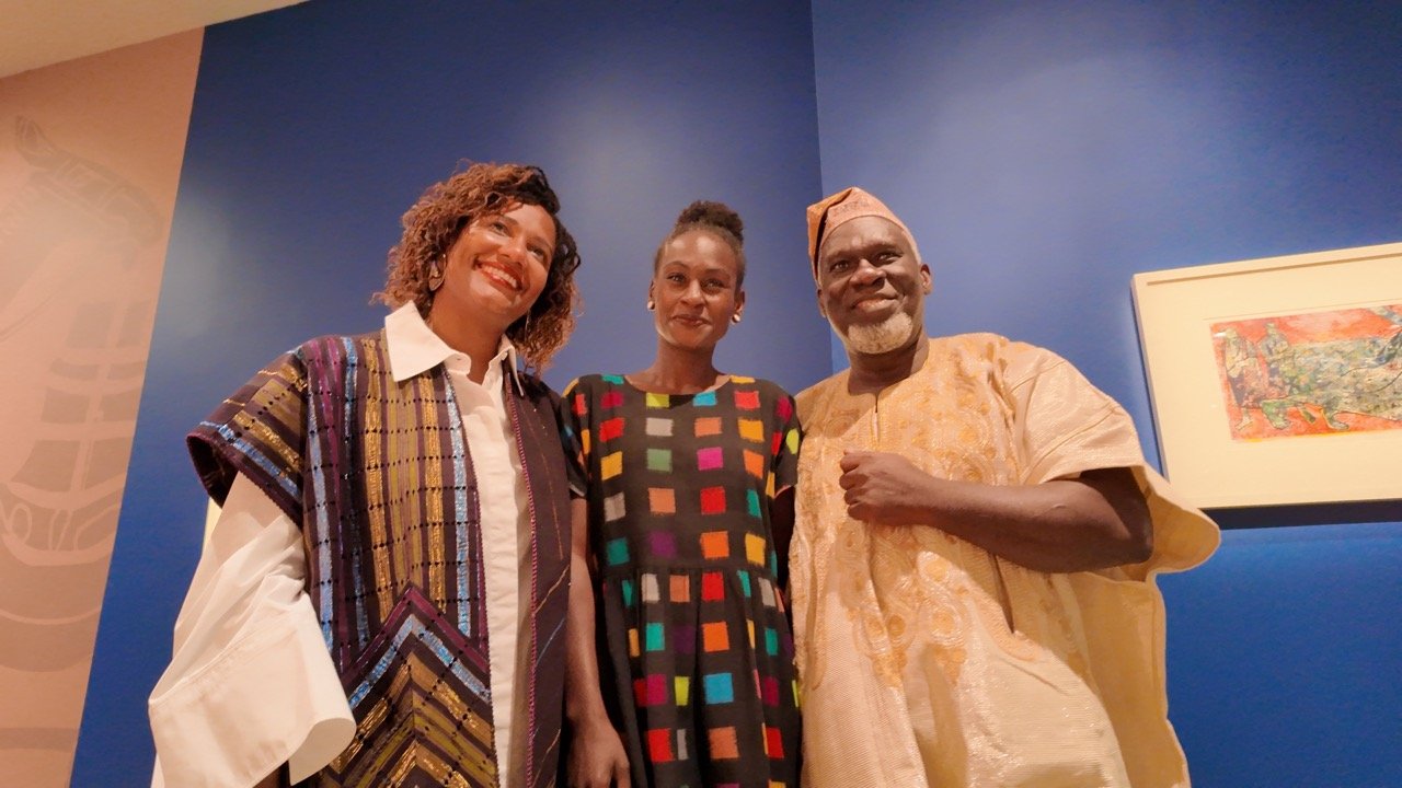 Opening Night: Guest curator Janine Gaëlle Dieudji with Lauren Tate Baeza Curator of African Art at the High Museum of Art in Atlanta and Mudiare Onobrakpeya of Bruce Onobrakpeya Foundation.