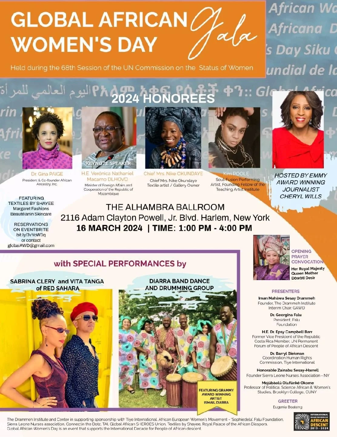 On March 16, a special Pan-African gala will take place in Harlem to celebrate Global African Women’s Day with African women and women of African descent from around the world, spanning; Africa, Latin America, Europe and the Caribbean.