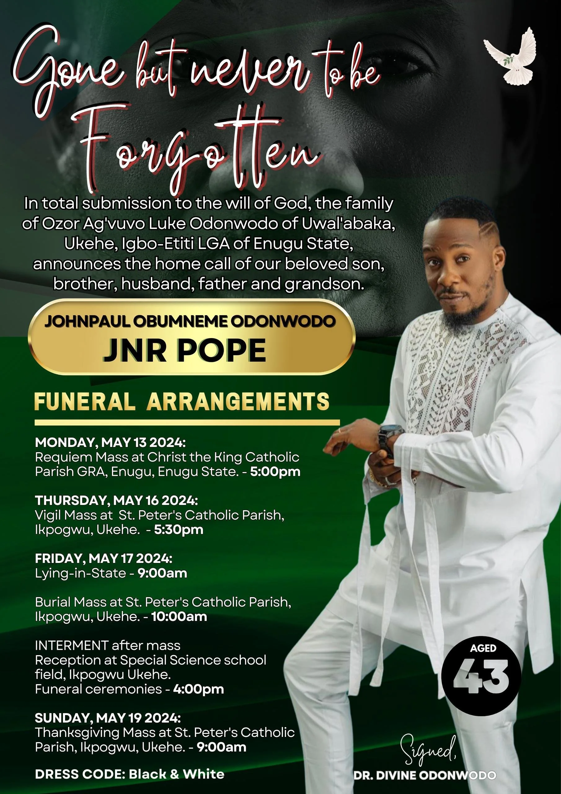 The Central Planning Committee that will plan and execute the burial of late Nollywood star, John Paul Obumneme Odonwodo better known by his stage name Junior Pope has been announced.