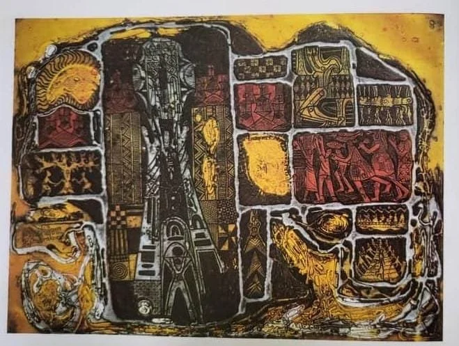 As we reflect on this artwork , we join Papa Bruce Onobrakpeya—a witness to Nigeria’s transformative journey since gaining independence in 1960—in prayer.